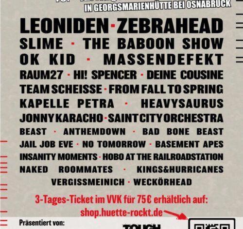 Festivalwelt von morgen. Wir freuen uns, ein Teil davon sein zu dürfen“ (Christian Peters, 2. Vorsitzender Die Hütte rockt e.V.) Für 60,00 € inkl. aller Gebühren gibt es aktuell die Tickets in der Preisstufe 1. Schnell sein lohnt sich also!